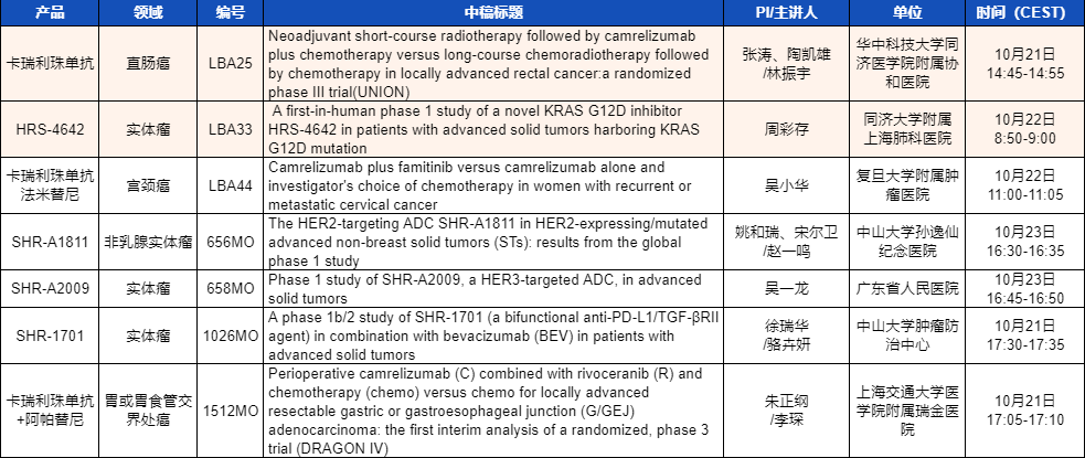 ESMO 2023 PG医药产品相关研究一览